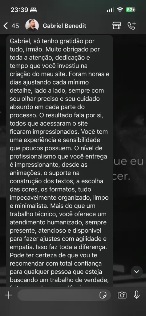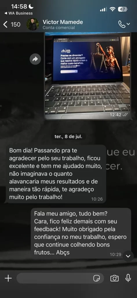 Aqui, não entrego só beleza visual. Entrego estratégia, performance e conversão tudo isso em até 5 dias úteis, para que você veja retorno rápido no seu investimento.